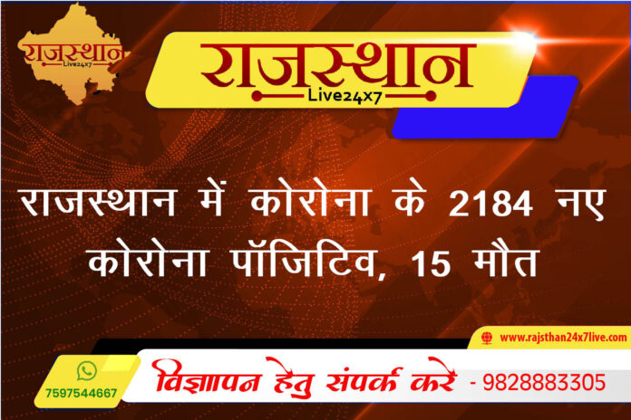 जयपुर . प्रदेश में कोरोना के नए मरीजों की संख्या अब बहुत तेजी से बढ़ रही है। रविवार को राजस्थान ( Rajasthan ) में कोरोना ( Corona ) के 2 हजार 184 नए पॉजिटिव ( New Corona Positive ) मामले सामने आए वहीं बीते 24 घंटे में 15 कोरोना पॉजिटिव ( Corona Positive ) मरीजों की कोरोना से मौत दर्ज की गई। प्रदेश में एक्टिव केस की संख्या भी बढ़कर 21 हजार 154 हो गई है वहीं रविवार को कोरोना से ठीक होने वालों की संख्या 2 हजार 90 रही।