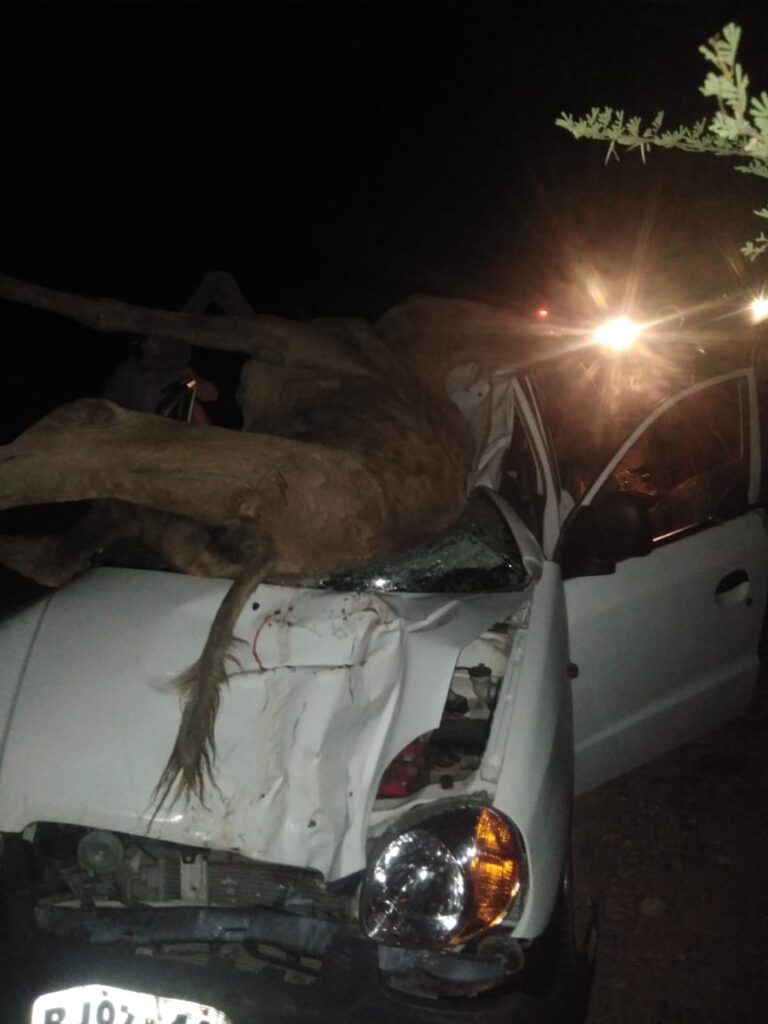 जयपुर रोड सेरुणा गाँव के पास कल रात एक गाडी 2 ऊँटो से टकरा गयी जिसमे दोनों ऊँटो की मौत हो गई वही गाडी में 2 जनो को पहले डूंगर गढ़ हॉस्पिटल ले जाया गया |वह से उनको पी.बी.एम रेफर किया गया |