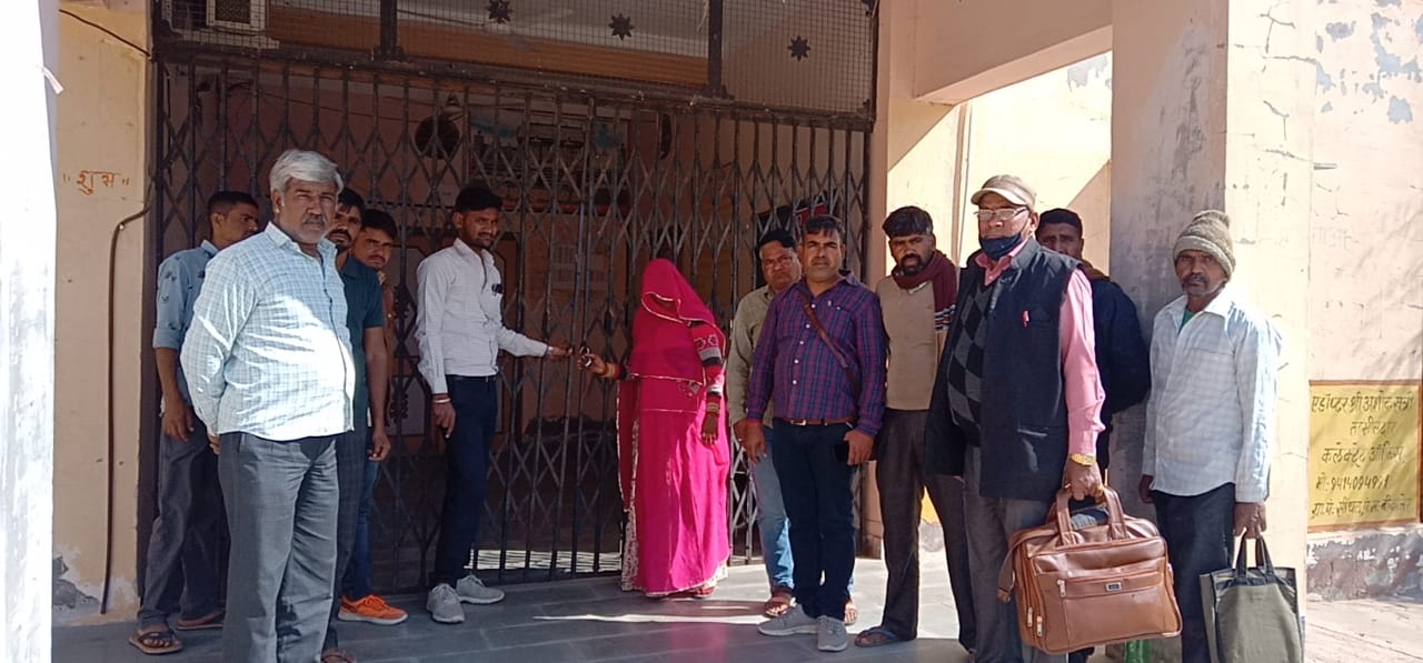 आज दिनांक 21 जनवरीको वित्त विभाग द्वारा ग्राम पंचायतों के पी डी खाते खोलने के आदेश के विरोध का राजस्थान सरपंच संघ के आह्वान पर बीकानेर के सरपंचों ने भी विरोध स्वरूप ग्राम पंचायतों के तालाबंदी की इसी कड़ी में बीकानेर ब्लॉक की ग्राम पंचायत सींथल में भी सरपंच श्रीमती मन्नू देवी ने भी वार्डपंचों के साथ तालाबंदी की इस दौरान सरकारी कार्मिक बाहर खड़े थे।