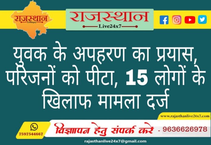 युवक के अपहरण का प्रयास, परिजनों को पीटा, 15 लोगों के खिलाफ मामला दर्ज