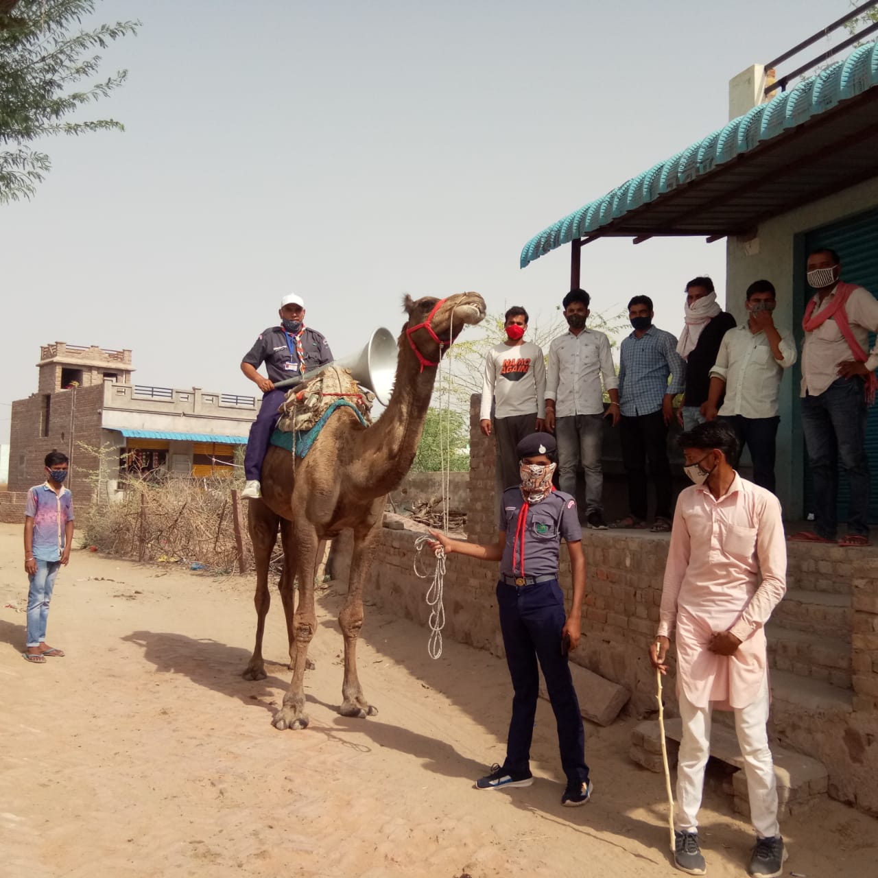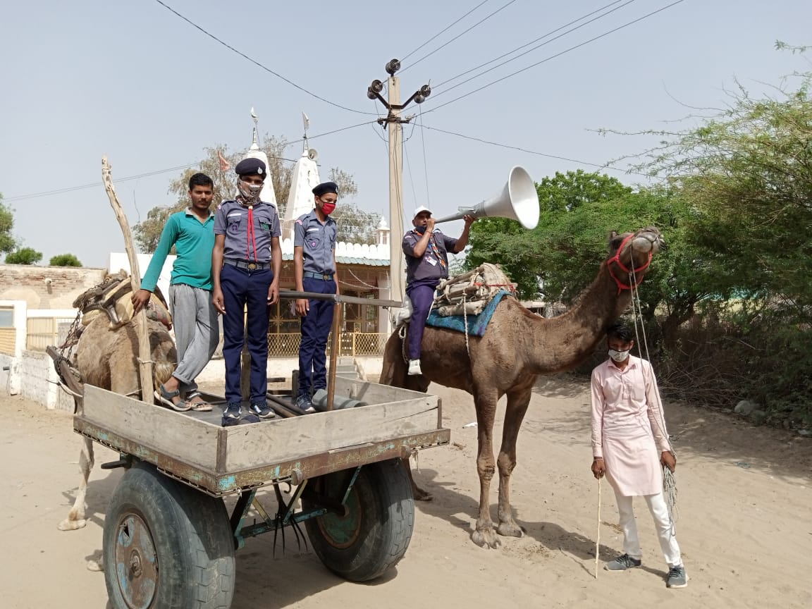बीकानेर गांव पूनरासर में अपनी जिम्मेदारी को जागरूक करने के लिए…मेरा ऑंगन,मेरा गांव रहे स्वस्थ इसकी छांव की आवाज घर-घर, मोहल्ले-मोहल्ले, गांव-गांव तक पहुंचाईं। राउमावि, पूनरासर के डॉ.विनोद चौधरी (शारीरिक शिक्षक) ने मिडिया को बताया की सरकार द्वारा चलाया गया यह अभियान मेरा गांव-मेरी जिम्मेदारी को लेकर..कोरोना की धूप हटानी है, गांव की छांव लौटानी है कि आवाज घर-घर मोहल्ले-मोहल्ले से लेकर पुरे गांव में ऊंट व ऊंटगाड़े पर स्काउट के छात्र राकेश नाथ,पवन स्वामी व स्काउट मास्टर डाॅ.विनोद चौधरी ने ऊंट के उपर धत्तूस्पिकर के माध्यम से अपनी बुलंद आवाज के द्वारा पुरे गांव के लोगों को कहां की आप स्वयं भी जागरुक हों, बच्चों को घरों में सुरक्षित रखते हुए, परिवार और समाज को भी जागरूक करें।कुछ दिन तक आप सार्वजनिक चौक-चोकी-चौराहे पर ताशपत्ती व हथाईं बन्द करें।घर पर रहें, सुरक्षित रहें,मास्क लगाना न भूलें,कोरोना गाइड लाइन का पालन करें।यह महामारी कब किसको संक्रमित कर जायें यह किसी को मालूम नहीं। पूनरासर मन्दिर के पुजारी श्री मोतीलाल बोथरा ने इस जागरूकता फैरी की सराहना करते हुए डॉ विनोद चौधरी का तालियां बजाकर अभिनंदन व स्वागत किया।डा विनोद चौधरी का कहना है कि पूनरासर के लोंग पुर्ण रुप से इस अनुशासन पखवाड़े का पालन कर रहें हैं।ऊंट व ऊंटगाड़े पर स्काउट के द्वारा लगाईं गई इस जागरूकता फैरी से काफी लोंग व युवा अनुशासित हुए हैं।इस फैरी की गांव के सभी लोगों ने सराहना की।मेरा गांव-मेरी जिम्मेदारी को निभाना है गांव को सुरक्षित बचाना है।