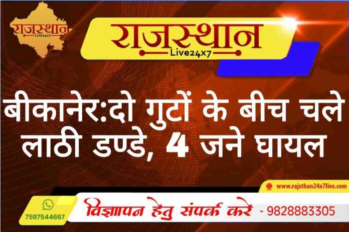 बीकानेर। सोलर प्लांट में दो गुट आपस में भिड़ गए हैं। घटना जामसर थाना क्षेत्र के नूरसर की हैं। जहां पर दो कांट्रेरक्टर आपस में भिड़ गए हैं। जिनमें एक नूरसर और एक भरू गांव का ठेकेदार हैं। सोलर प्लांट में ठेके को लेकर आपस में बेालाचाल देखते ही देखते मारपीट में बदल गयी। जामसर थानाधिकारी गौरव से मिली जानकारी के अनुसार लाठी और डण्डे से दोनो गुटों में मारपीट हुई हैं। जिसमें करीब 4 लोग घायल हो गए हैं। घायलो में एक पक्ष के मुराम,हाकम है वहीं दूसरे पक्ष के यूसूफ घायल हुआ हैं। घटना की सूचना मिलते ही पुलिस ने मौके पर पहुंचकर मामला शांत करवाया हैं।