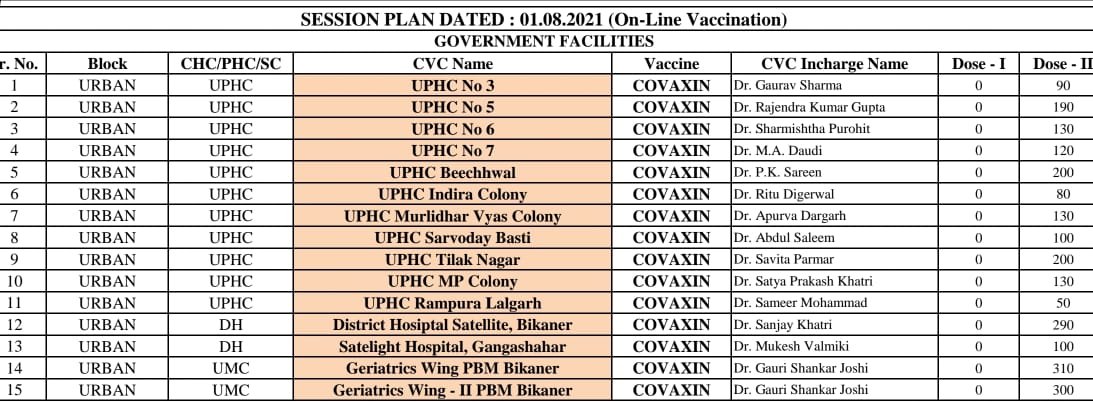 बीकानेर :- कल इन केंद्रों पर होगा टीकाकरण, देखे सूची