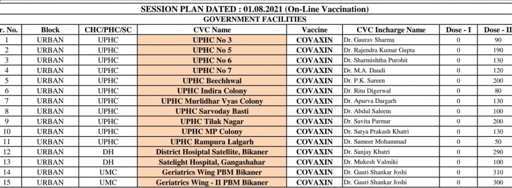 बीकानेर :- कल इन केंद्रों पर होगा टीकाकरण, देखे सूची