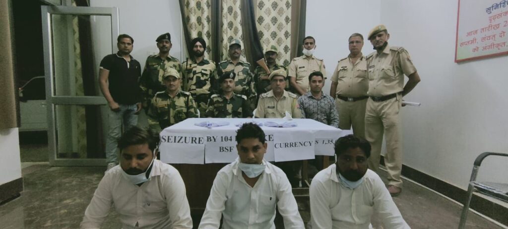- बीएसएफ ने घड़साना- सखी रोड़ पर नाकाबन्दी की। साथ ही सूचना पुलिस के साथ भी साझा की। दोपहर के 2:15 बजे बीएसएफ व पुलिस की संयुक्त नाकाबन्दी ने घड़साना की ओर से आई कार को रोककर तलाशी ली। कार सवार तीन जनों को हिरासत में लिया गया। कार की तलाशी लेने पर तीनों के कब्जे से 2०००-२००० रुपए के 9 जाली नोट व 500-५०० रुपए के 234 नकली नोट बरामद हुए। जिनका कुल मूल्य 1 लाख 35 हजार रुपए है, जब्त किए गए।