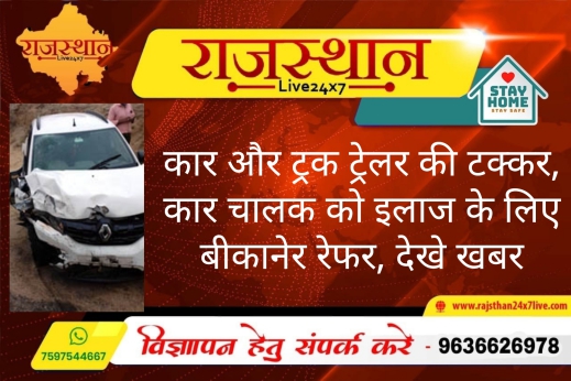कार और ट्रक ट्रेलर की टक्कर, कार चालक को इलाज के लिए बीकानेर रेफर, देखे खबर