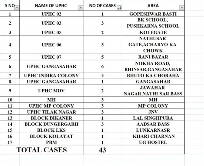 राजस्थान में फिर कोरोना का कहर जारी है। रविवार को जारी लिस्ट में कोरोना ने बीकानेर जिले में बड़ी छलांग लगाई है। बीकानेर शहर के लगभग हर कोने से अब कोरोना पॉजिटिव मरीज पाए जा रहे हैं। यह स्थिति बड़ी चिंता जनक है। इसका एक प्रमुख कारण लोगों की लापरवाही है ऐसा माना जा रहा है।