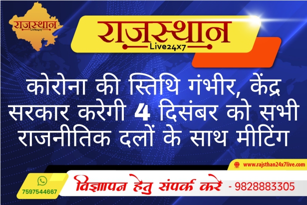 कोरोना महामारी के कारण कुछ राज्यों में स्थिति फिर से गंभीर होती जा रही है, जिसे लेकर केंद्र राज्य सरकारें सतर्कता बरत रही हैं। इसके मद्देनजर केंद्र सरकार अगले महीने सभी राजनीतिक दलों के साथ मीटिंग करने जा रही है। सूत्रों के हवाले से जानकारी मिली है कि राज्य सभा और लोक सभा के सभी सदस्यों के साथ चार दिसंबर को बैठक होगी। इश दौरान कोरोना की स्थिति को लेकर चर्चा की जाएगी।