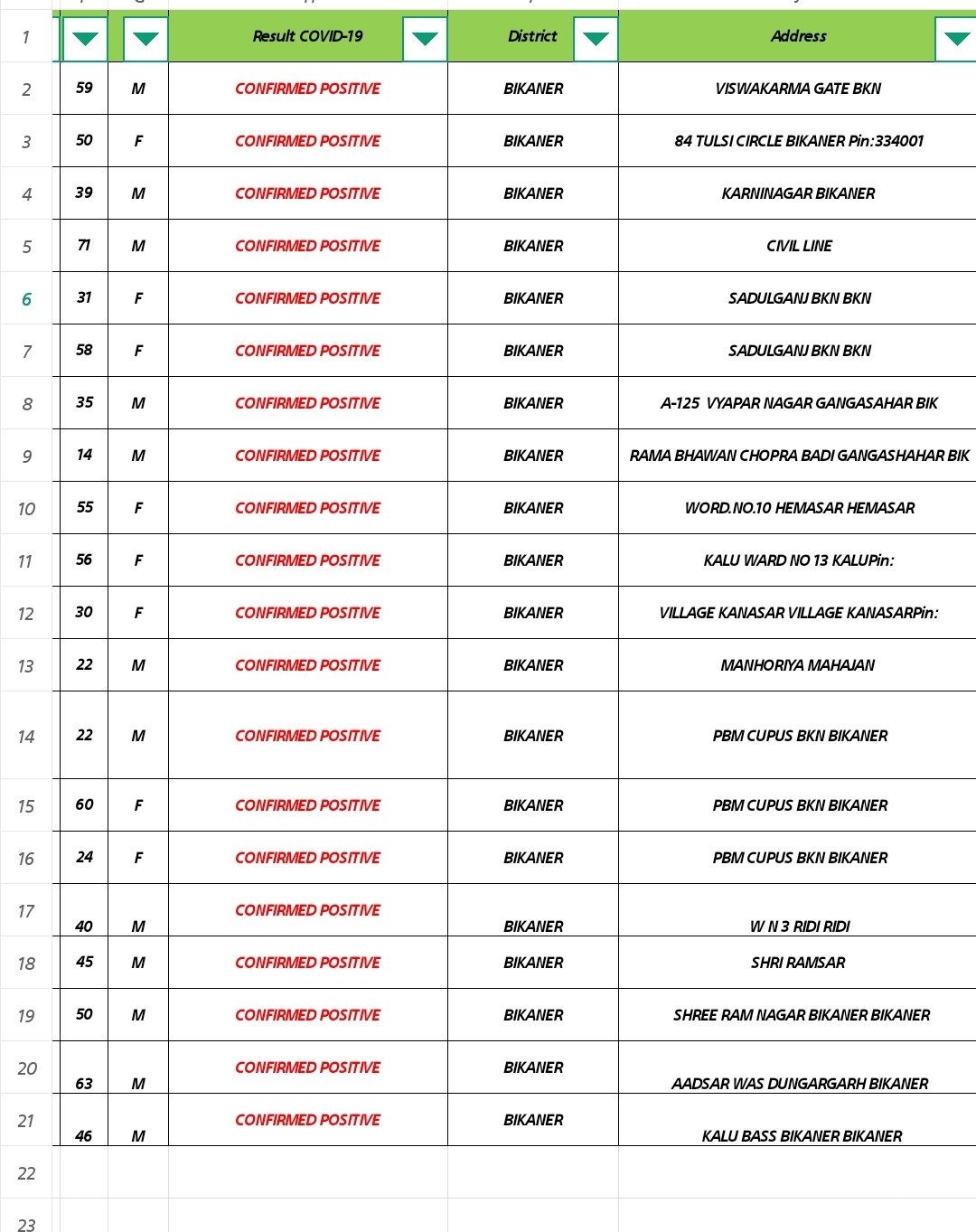 बीकानेर में कोरोना की रफ्तार पड़ी धीमी, 947 सेम्पल में से आये 20 पॉजिटिव इन इलाकों से Published By Kamal Swami - December 6, 2020 WhatsApp Facebook Twitter Telegram