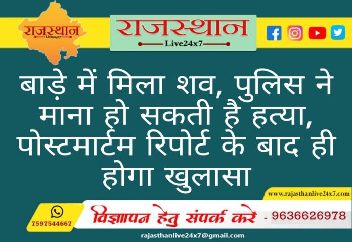 बीकानेर में व्यक्ति की हत्या का मामला सामने आया है। मामला जयनारायण व्यास कॉलोनी थाना क्षेत्र का है। मृतक की पहचान रिड़मलसर सिपाहियान निवासी मांगीलाल मेघवाल के रूप में हुई है। पुलिस के अनुसार आज सुबह जयपुर रोड़ स्थित वृंदावन एन्क्लेव के सामने स्थित एक बाड़े में मांगीलाल का शव मिला। मांगीलाल का सिर फूटा हुआ था। बाड़े की रखवाली करने वाले व्यक्ति ने पुलिस को बताया है कि वह बीती रात साढ़े सात बजे बाड़े से गया तब तक वहां कोई नहीं था। सुबह साढ़े नौ बजे जब वह वापिस आया तो मांगीलाल का शव मिला। रखवाली कर्ता मांगीलाल को जानता था। वहीं परिजनों ने बताया है कि मांगीलाल शराबी था तथा घर पर कभी कभी ही आता था। वह कोई काम काज नहीं करता था। पुलिस के अनुसार मांगीलाल के पुत्र के आने के बाद मुकदमा दर्ज किया जाएगा। प्रथम दृष्टया मामला हत्या का प्रतीत होता है। पुलिस ने मामले की जांच शुरू की है।