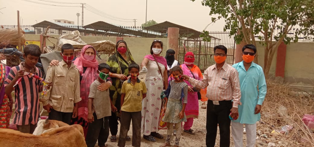 झुग्गी झोपड़ी में किया अल्पाहार और मास्क वितरण