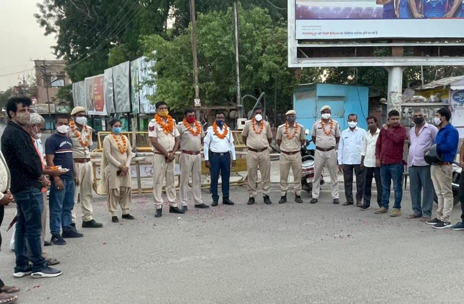 भीषण गर्मी नौतपा मैं तैनात ड्यूटी के दौरान पुलिस कर्मियों का सादुल सिंह सर्किल पर माला पहना कर तालियों के साथ किया अभिनंदन