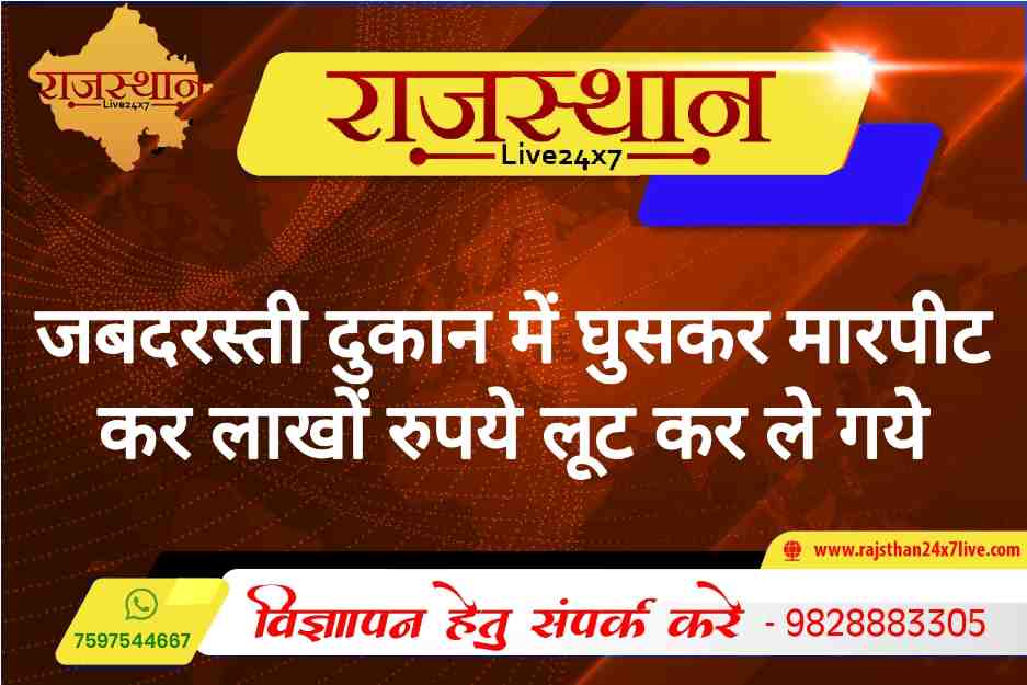 बीकानेर। जिले के कोलायत तहसील के बीठनोक में कुछ लोग एक दुकान में घुसकर दुकानदार के साथ मारपीट कर दुकान में रखे हजारों रुपये लूट कर ले गये। पुलिस से मिली जानकारी के अनुसार कोलायत के बीठनोक में रहने वाले श्रवण कुमार पुत्र भगवानाराम व अशोक कुमार पुत्र बजरंग लाल ने भूरसिंह, भाखर सिंह, किशन सिंह, सांग सिंह, महावी सिंह, जीतू सिंह व 10 12 अन्य जने मेरी दुकान में जबरदस्ती घुसे और श्रवण कुमार के साथ मारपीट कर उसकी दुकान में रखे 9000 रुपये तथा अशोक के केन्द्र से 120000 रुपये लूट कर ले गये पुलिस ने मामला दर्ज कर जांच थानाधिकारी अजय कुमार को दी गई है।
