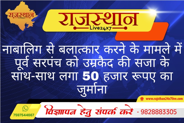 नाबालिग से बलात्कार करने केमामले में विशेष न्यायालय ने पूर्व सरपंच को उम्रकैद की सजा सुनाई हैं। श्रीगंगानगर के पॉक्सों कोर्ट की विशेष न्यायालय ने यह सजा सुनाई हैं। कोर्ट ने आज सुनवाई करते हुए आरोपी राजेन्द्र बराड़ निवासी 4जेड़ को आजीवन कारवास के साथ-साथ 50 हजार रूपए का जुर्माना भी लगाया हैं। यह राशि पीडि़ता को देने का आदेश दिया गया हैं। उल्लेखनीय है कि आरोपी पूर्व सरपंच ने 4 साल पहले नाबालिग लड़की के साथ जबरन दुष्कर्म किया था। जिस पर आज सजा सुनाई गयी हैं।