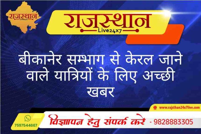 बीकानेर सम्भाग से केरल जाने वाले यात्रियों के लिए अच्छी खबर