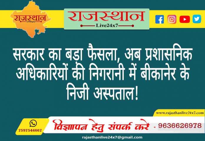 सरकार का बड़ा फैसला, अब प्रशासनिक अधिकारियों की निगरानी में बीकानेर के निजी अस्पताल!