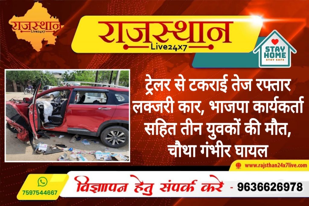 ट्रेलर से टकराई तेज रफ्तार लक्जरी कार, भाजपा कार्यकर्ता सहित तीन युवकों की मौत, चौथा गंभीर घायल