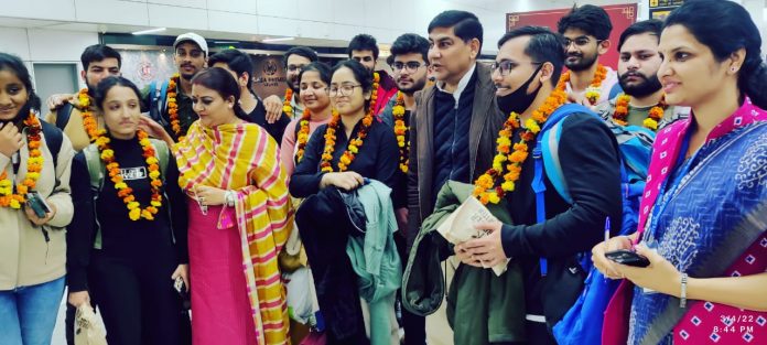 यूक्रेन से दिल्ली एयरपोर्ट पहुंची 6 उड़ानों में राजस्थान के 47 विद्यार्थियों की एयरपोर्ट पर राजस्थान सरकार के तीन मंत्रियों सहित अधिकारियों ने अगवानी