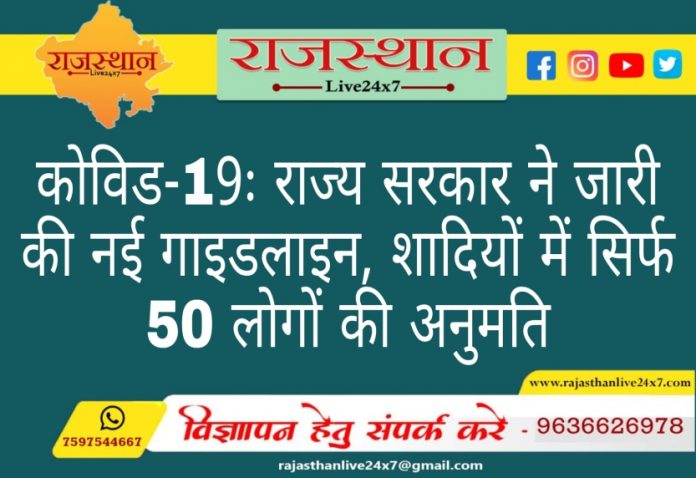 कोविड-19ः राज्य सरकार ने जारी की नई गाइडलाइन, शादियों में सिर्फ 50 लोगों की अनुमति