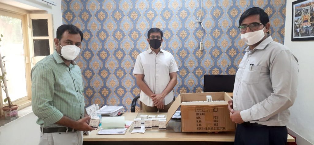बीकानेर, 22 मई। नेत्र ज्योति सेवा संस्था द्वारा शनिवार को 400 पल्स ऑक्सीमीटर जिला कलक्टर नमित मेहता को भेंट किए गए। इस अवसर पर जिला कलक्टर ने कहा कि कोरोना संक्रमण के चुनौतीपूर्ण दौर में राज्य सरकार एवं जिला प्रशासन द्वारा सभी आवश्यक व्यवस्थाएं की गई हैं। इसके साथ ही अनेक संस्थाएं भी आगे आकर सहयोग कर रही हैं, जो कि सराहनीय है। इससे दूसरों को भी प्रेरणा मिलती है। उन्होंने कहा कि संस्था द्वारा उपलब्ध करवाए गए यह पल्स ऑक्सीमीटर सीएचसी और पीएचसी स्तर पर उपयोग में लिए जाएंगे। इसके लिए यह पल्स ऑक्सीमीटर मुख्य चिकित्सा एवं स्वास्थ्य अधिकारी को सौंपे जाएंगे। इस दौरान नगर निगम उपायुक्त पंकज शर्मा, संस्था के राकेश सोलंकी और शहजाद अहमद मौजूद रहे।