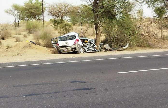 महाजन थाने से मिली जानकारी के अनुसार पंजाब की तरफ से आ रही एक कार में ड्राइवर को नींद की झपकी आने के कारण कार पेड़ से टकरा गई। टक्कर इतनी जबरदस्त थी कि कार बुरी तरह क्षतिग्रस्त हो गई और अंदर बैठे लोग भी बुरी तरह फंस गए। पुलिस को सूचना मिलने पर पुलिस मौके पर पहुंची और आसपास के ग्रामीण जन भी सहायता के लिए मौके पर पहुंचे। कार में सवार लोगों को करीब डेढ़ घण्टे की मशक्कत के बाद कार को तोड़कर बाहर निकाला गया। जहां से उन्हें महाजन सामुदायिक स्वास्थ्य केंद्र पर प्राथमिक उपचार के लिए लाया गया। जहां पर ड्राइवर अनुज कुमार को मृत घोषित कर दिया गया। वही अनुज कुमार की पत्नी चारू देवी 32 वर्ष व अनुज की सास नीलम देवी 58 वर्ष व अनुज का लड़का जिसकी उम्र 2 साल को प्राथमिक उपचार करने के बाद गंभीर स्थिति में बीकानेर के लिए रेफर किया गया जिसमें चारु देवी की स्थिति गंभीर बताई जा रही है। दुर्घटना की सूचना मिलने पर मृतक अनुज कुमार के परिजन महाजन पहुंचे । मृतक के भाई विक्रम द्वारा मामला दर्ज करवाया गया। शव का पोस्टमार्टम करवाकर शव परिजनों को सुपुर्द किया। पुलिस ने मामला दर्ज कर जांच शुरू की।