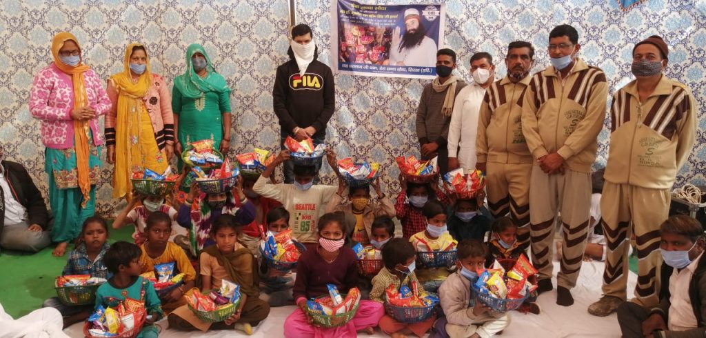 खाजूवाला ब्लॉक की नामचर्चा के दौरान साध संगत ने 21 बच्चों को वितरण किया खाने का सामान
