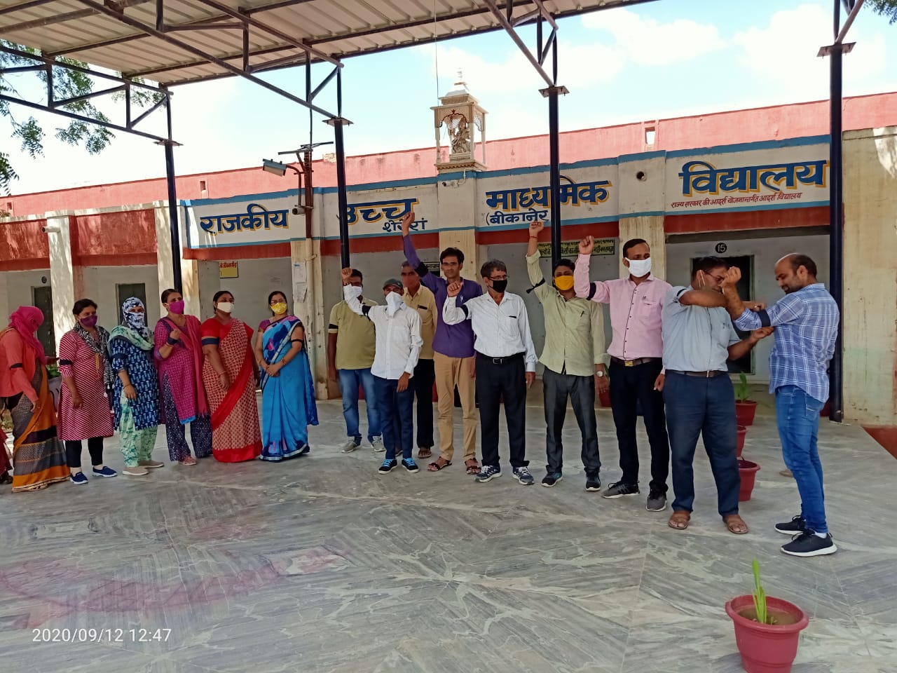 अगर सरकार की ओर सेवेतन कटौती आदेश को वापस नहीं लिया गया तो जयपुर में बड़ा आंदोलन किया जाएगा जिसकी समस्त जिम्मेदारी राज्य सरकार की होगी। प्रदेशाध्यक्ष मोहरसिंह सलावद,महामंत्री श्याम सुंदर बिश्नोई, मुख्य संगठन मंत्री काशी सारस्वत, प्रदेश मंत्री मोहन लाल मीणा,संगठन मंत्री भावना मक्कड़,कालूराम मीणा, प्रधानाचार्य अंशु जैन, रेणु वर्मा, नरेंद्र व्यास,अनवर,गोपाल,अल्का,गुलशन, रमन मुदगल, बबीता वर्मा,निर्मला केशवानी, कुलजीत कश्यप,विकास पंवार,जमाराम सोढा,सरस्वती,अर्चना राठौड़,प्रधानाचार्य संतोष गक्कड़,पुष्पा चौधरी, नारायण कड़वासरा, संतोष अनेजा,कांता चौहान,ममता,वीणा यादव,देवकी भाटी,रतिराम,मुकेश चौधरी,शंकरलाल मीणा,सुरेन्द्र वर्मा,महिमा पालीवाल,गायत्री सुथार,रजनी,सौरव कश्यप,गणेश शना,जयराम मीणा,तपसीराम,राजेन्द्र कुमार,लोकेश मीणा सहित सैकड़ों शिक्षकों ने काली पट्टी बांध कर विरोध प्रदर्शन किया।