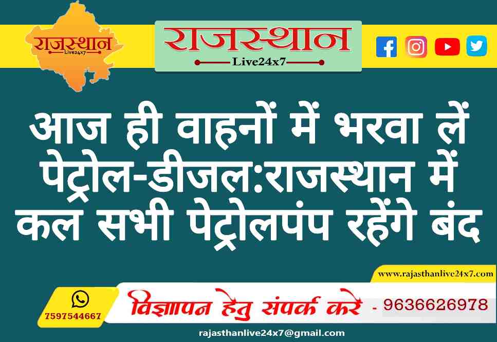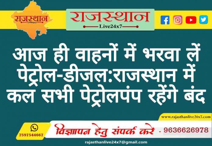 आज ही वाहनों में भरवा लें पेट्रोल-डीजल:राजस्थान में कल सभी पेट्रोलपंप रहेंगे बंद