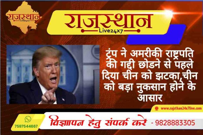 - बीकानेर अमरीका के राष्ट्रपति डोनाल्ड ट्रंप ने राष्ट्रपति की गद्दी छोडऩे से पहले चीन को बड़ा झटका दे दिया। जिससे चीन को बड़ा नुकसान होने के आसार दिखाई दे रहे हैं। ट्रंप प्रशासन की ओर से चीन के आठ मोबाइल ऐप्स को प्रतिबंध करने के आदेश जारी कर दिए हैं। ट्रंप प्रशासन ने राष्ट्रीय सुरक्षा का हवाला देते हुए कहा है कि इन ऐप्स से अमरीकी लोगों की निजी जानकारी एकत्र की जा रही है।