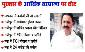 पैतृक जिले गाजीपुर के महुआबाग में आलीशान गजल होटल भी निर्माण में अनियमितता और उसकी जमीन की खरीद फरोख्त में धांधली के आरोप के बाद बीते साल एक नवंबर को ढहा दिया गया। इस मामले में मुख्तार अंसारी की पत्नी अफशां अंसारी, व दोनों बेटों समेत 12 लोगों के खिलाफ एफआईआर भी दर्ज है। नौ नवंबर को गाजीपुर के रजदेपुर में मुख्तार के एक शाॅपिंग प्लाजा व कोचिंग संस्थान की बिल्डिंग समेत सम्पत्ति कुर्क की गई। इसकी कीमत 1 करोड़ 38 लाख 37 हजार के करीब आंकी गई है।